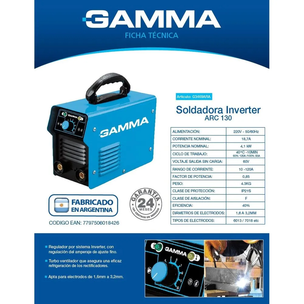 Soldadora Inverter ARC130 – 130AMP 60 HZ – GAMMA