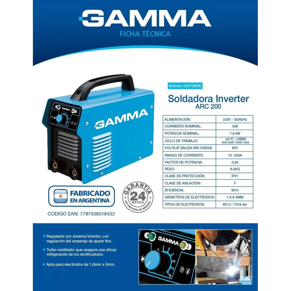 Soldadora inverter ARC200 – 200AMP 60HZ – GAMMA