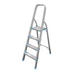 Escalera de aluminio articulada con 4 escalones por lado (4 lados), se adapta y ajusta según la necesidad de altura. Realizada con material aislante eléctrico. Ideal para mantenimiento del hogar o uso profesional.